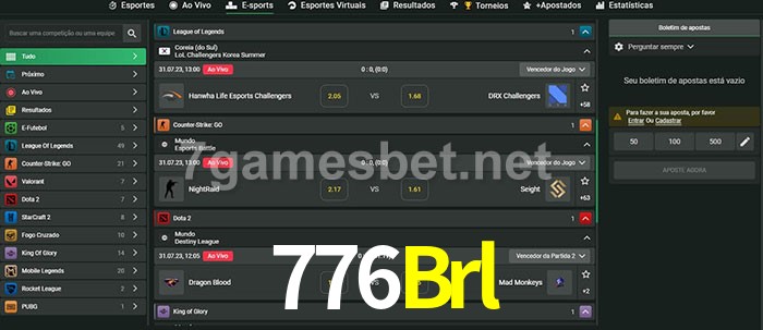 A aposta 776Brl oferece aos jogadores a experiência mais conveniente de apostas em eSports!